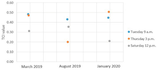 The specific experiment of this paper tackles a traffic congestion use-case. Measuring traffic congestion in a systematic way has proved to be useful. As an example, in [70] a congestion use-case in a real port in China was optimised using a predictive algorithm. In this regard, using composite indicators has already been explored in [71], in which a e composite index—Traffic Congestability Value (TCV)—was defined to monitor the congestion by measuring in real-time number of vehicles and average while driving through specific land areas on the East of India.