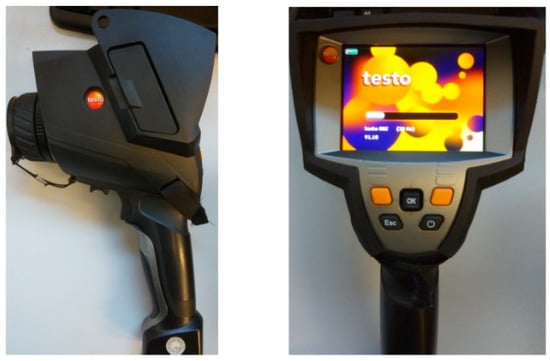 For this analysis, all tests were conducted at room temperature. During fatigue testing, infrared images of the samples surfaces were acquired using an IR camera (Testo 882, Titisee-Neustadt, Germany) to measure the variation of the specimen surface temperature. This camera is shown in Figure 2. The IR camera pixel resolution of 320 × 240 and the temperature sensitivity of 50 mK was sufficient to monitor the temperature variation accurately.