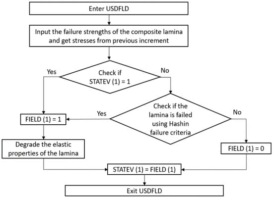 Flowchart of the Progressive Damage Model implemented in the Abaqus user subroutine USDFLD.
