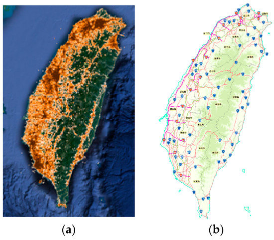 In general, a location with latitude and longitude is termed as a geographical point. There are very many geographical points generated by various social network services (SNSs) of the platforms, such as Facebook, Twitter, Google, and Foursquare. Check-in for some targets is a location-based service. It provides a mechanism to record users who have visited these geographical points. Among these platforms, Facebook is the largest one with regard to the number of users. In Facebook, these points are termed as “places”. In other words, the check-in places are the locations that people actually visited. So, using these points as experimental samples to explore the crowd distribution is reasonable and credible. The Facebook penetration rate in Taiwan is the highest in the world. Here, the number of daily users reached 13 million of approximately 23 million. Accordingly, Taiwan is an appropriate selection as the experimental area, where the main island has an area of 35,808 square kilometers.