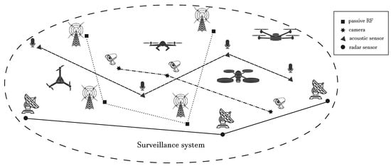- Shi, X.; Yang, C.; Xie, W.; Liang, C.; Shi, Z.; Chen, J. Anti-Drone System with Multiple Surveillance Technologies: Architecture, Implementation, and Challenges. IEEE Commun. Mag. 2018, 56, 68–74. [Google Scholar] [CrossRef]