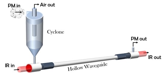 A schematic drawing of the PM chemical identifier (PM-CID) is shown in Figure 1. The main components of the prototype are the mini cyclone, the hollow waveguide, and the FTIR.