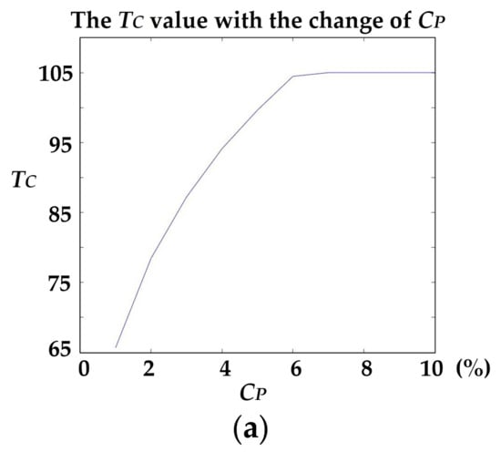 Finally, the sensitivity of the CP with TC was also tested. Figure 16a shows the changing trends of the value of TC with CP; where CP increases, TC increases. When CP reaches 6%, TC approaches saturation. We did not test for cases greater than 10%, as crack points rarely account for more than 10% of the surface points on large roadways.