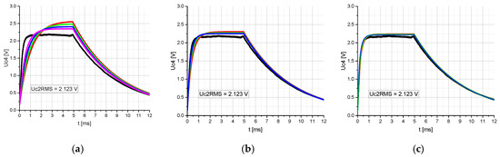 Figure 7 is that depending on the circuit topology used, an approximately constant range of Uc4Mean is achieved within a specific range of Uc2RMS. The range of Uc2RMS in which Uc4Mean is approximately constant and the slope of Uc4Mean within this range are defined by the circuit topology of nonlinear capacitors.