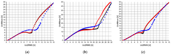 Figure 7a,c), in a range of Uc2RMS between about 6 V and 9 V. An interesting point in