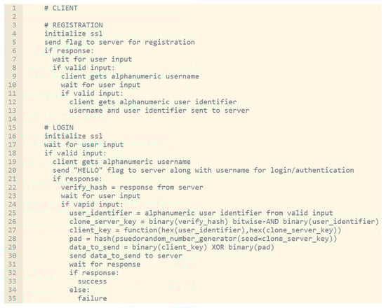 We evaluated the scheme in context of the following factors: (i) our scheme does not inflate user responsibilities or add complexities, as they are only responsible for reproducing their user identifier, similar to current-day password-practices. (ii) This scheme does not append or change architecture or structural aspects of current client–server communication model. (iii) This scheme does not sacrifice processing speed as it provides a more secure communications. (iv) The proposed scheme can be easily and flexibly integrated with other schemes to combat other cyber-attacks, as explained through how biometric or graphical interfaces can be paired together to further combat brute-forcing. (v) This scheme out-performed other prototypes [] and [], as well as other contemporary methods which were studied, as well as provided resilience to the focused fields of eavesdropping, impersonation, and interception mechanically. (vi) The scheme did not create any additional vulnerabilities or weaknesses to other attacks which the scheme was not explicitly focused on addressing, such as brute-forcing, and (vii) it provides a strong resilience to cyber-attacks (as in Section 5, as well as the proof-of-concept implementation within Section 6) without any additional middlemen, proprietary or distinctive software, or complex algorithmic functionalities. We have created and shown a proof of concept as a testable system that does not burden the user or require any alterations to any client–server architectures. Where this system does show weakness, augmenting methodologies can be used to circumvent weaknesses; for example, the usage of 2FA/MFA, and flexible front-facing interfaces for authentication. Furthermore, this form of authentication allows for secure session management and an increased security in stored data on server-side databases.