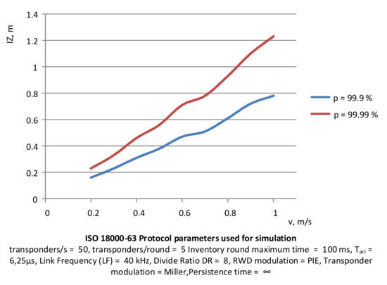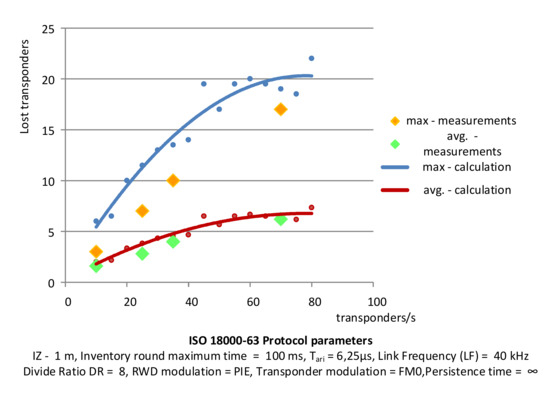 In the above solutions, the RFID readers and transponders move relative to each other dynamically. Therefore, for their correct operation and implementation, it is necessary to specify the system parameters in such a way that the transponder reading is smooth, and the probability of data loss is as low as possible.