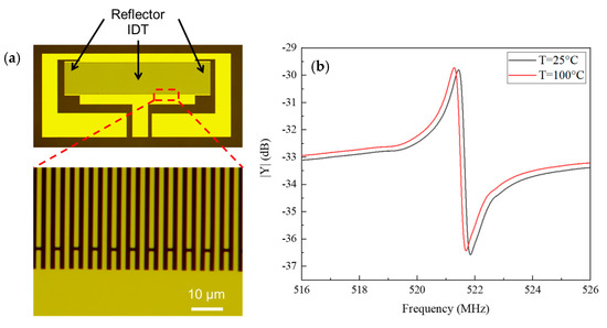 - Hao, W.C.; Luo, W.; Zhao, G.H.; Jiao, H.L.; Yin, Y.G. FEM analysis of response mechanism for temperature sensors based on surface acoustic wave resonators. In Proceedings of the 13th Symposium on Piezoelectrcity, Acoustic Waves, and Device Applications, Harbin, China, 11–14 January 2019; pp. 1–5. [Google Scholar]