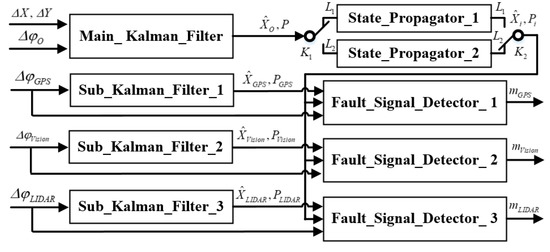 Fault signal detection and isolation, as well as fault-tolerant control systems, are important contents in the research field of autonomous vehicle and prerequisites for ensuring the driving safety in complex traffic scenarios. The failure of autonomous vehicles mainly occurs in the process of sensing information acquisition and motion state transmission. Fault detection and isolation algorithms are widely used in various unmanned systems, such as ground autonomous vehicles [1], underwater robots [2], and autonomous helicopters [3]. For autonomous vehicle systems, fault signal detection and isolation algorithms play an important role in autonomous environment perception, decision making, and motion control. In order to effectively detect and isolate fault signals and perform stable motion control, many schemes and technologies have been proposed, which can be divided into: the nonlinear algorithms [4] and the linear algorithms [5,6]. With the continuous development of autonomous vehicle technology, the types and number of on-board sensors also continue to increase, and the fault sensor signals have become the main reason for vehicle failure [7,8,9].
