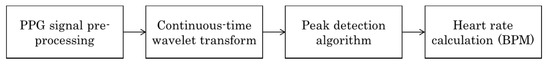 Block diagram showing the main processing steps to extract pig′s heart rate from PPG signal.