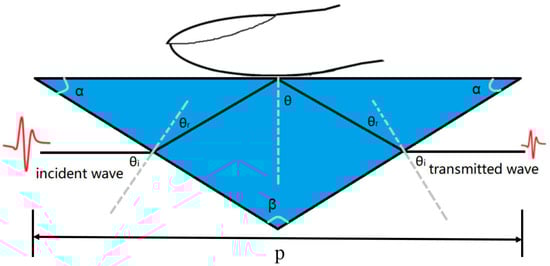 The spectrometer employed for the in vivo investigation of samples is configured to perform reflection measurements. Experiments are performed using a combination of terahertz time domain spectroscopy (THz-TDS), described in detail in [40,41], and ATR [42,43]. The experimental setup has a frequency resolution of 9 GHz, which can fully describe a detailed spectrum of skin. According to the ATR principle, a triangular prism was designed, as shown in Figure 1.