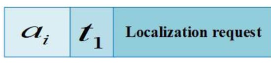 In phase II, ordinary sensor nodes that have been located can be used as the new reference nodes if they reach the confidence index. Then, ordinary sensor nodes that are not located in the first phase send their localization requests within their communication range. When the new reference node receives the localization request from the ordinary sensor node, the relevant localization message block is feedback. The localization request is shown in Figure 5. The localization message is shown in Figure 6, where is the of the new reference node.