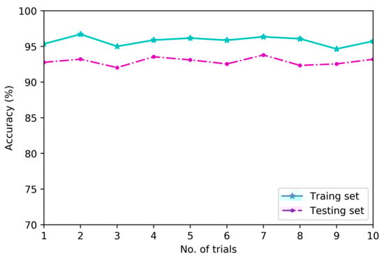 From Table 2, we can find that diagnostic models based on BPNN and SVM are more sensitive to the forms of features inputted into the diagnostic model []. The average testing accuracies of these two shallow structured models with the input of manual features and features without pre-processing are 84.27% and 81.46%, 79.62% and 76.49%, respectively. However, the accuracies of the proposed model are very close, which are 94.23% and 93.84%. It indicates that without complex previous signal pre-processing, the proposed model can still recognize the vast majority of testing samples. It indicates the advantage of the proposed deep learning model on processing raw data adaptively and efficiently.