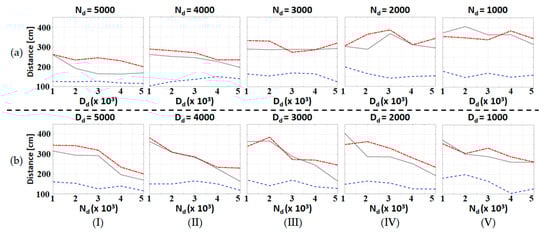 Figure 8 shows that the walking distance increases as Nd decreases. This result can be seen more clearly from Figure 10b. Besides, Dd seems to have no definite influence on the walking distance as shown in Figure 10a.