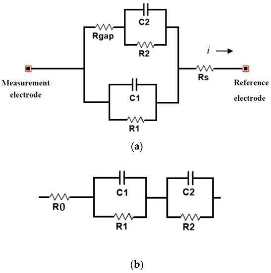 On another hand, the equivalent impedance, Zeq, according to the model selected (Figure 1d) is given by Equations (1) and (2):