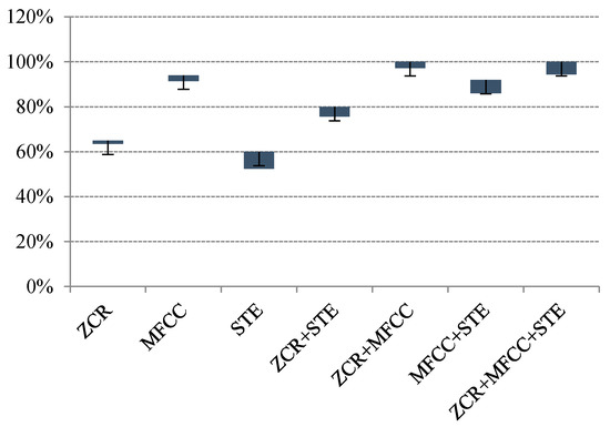 - Martin-Morato, I.; Cobos, M.; Ferri, F.J. A case study on feature sensitivity for audio event classification using support vector machines. In Proceedings of the 2016 IEEE 26th International Workshop on Machine Learning for Signal Processing (MLSP), Salerno, Italy, 13–16 September 2016; pp. 1–6. [Google Scholar]