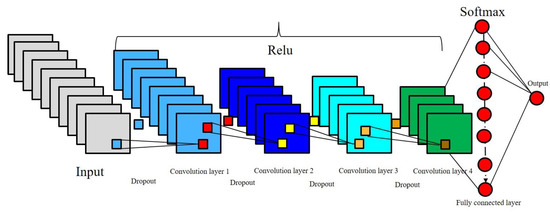 Hidden layer: A fully connected hidden layer is located at the end of the four convolutional layers. This layer computes the transformation , where the weight matrix is expressed as , the bias can be estimated as , and the ReLU function is . Consequently, the output can be presented as the of this layer, which is similar to the mathematical structure of the input data [38].