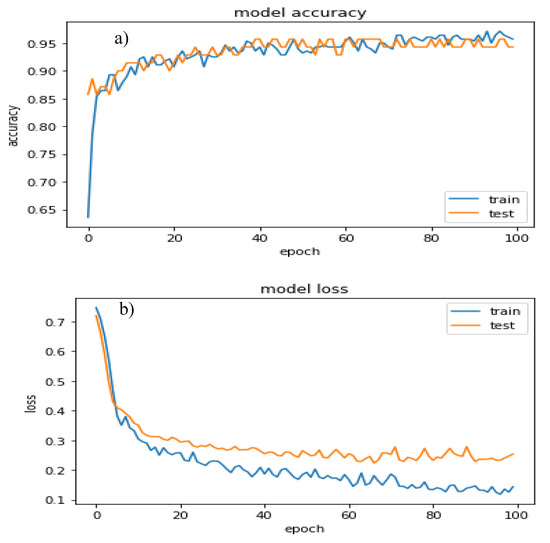 (a) Accuracy and (b) loss estimation of the CNN model for earthquake prediction.