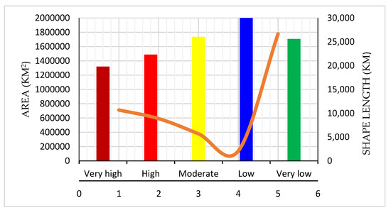 The probability assessment was completed on the basis of nine factors (Table 1). Figure 8 presents the results of the predictive analysis-based probability assessment and the probability map. According to the literature, CNN is one of the most reliable models for probability assessment; ANN provides an accuracy of 84%. The proposed technique performs better than ANN prediction while significantly reducing processing time and improving efficiency. In addition to event prediction, the proposed approach provides the best estimates of probability from the events that already occurred. The plot of the probable classes (with area and shape length) explains the variation in the probability with respect to distance and area (Figure 10).