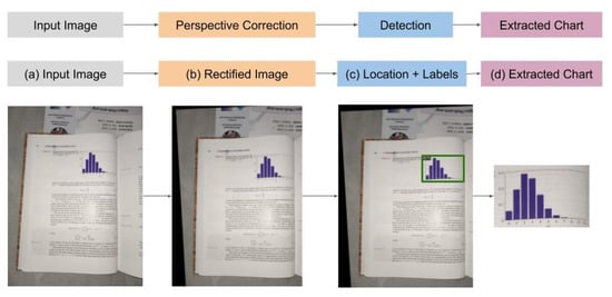 The perspective correction has been applied in many computer vision tasks, such as automobile license plate recognition, non-Latin characters OCR, and document rectification [35]. These corrections are applied to perspective distortions that can be found in real-world photography, as digital cameras follow a pinhole camera model that generates it [36]. Real-world chart recognition is subject to these perspective distortions and also of its corrections.