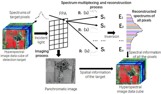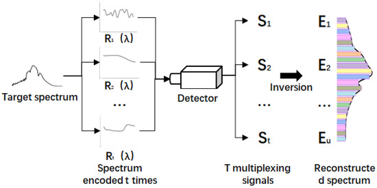 The process of spectral reconstruction is the process of solving Equation (4). The spectral reconstruction is completed by solving . The measurement principle is shown in Figure 2.