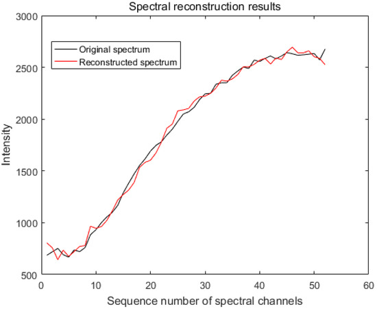 In order to verify the feasibility of modulation of the incident spectrum by a broadband filter to recover the spectrum of the detected target and the influence of various factors, we used the three-dimensional spectral data cube (PaviaU) of a feature obtained from an existing hyperspectral imager as the simulated incident spectrum, reconstructed the spectrum using the algorithm established in Section 3 and then evaluated the accuracy or distortion of the reconstructed spectrum.