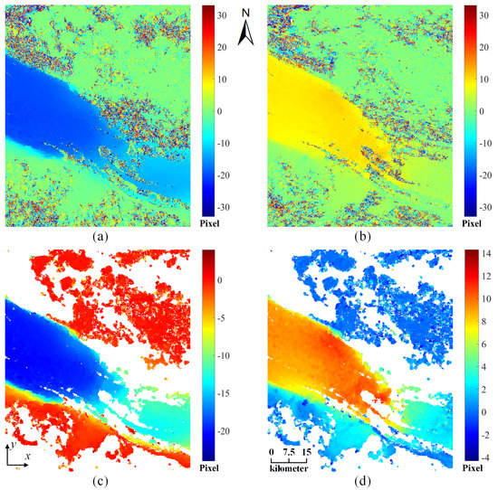 - Leprince, S.; Barbot, S.; Ayoub, F.; Avouac, J.P. Automatic and precise orthorectification, coregistration, and subpixel correlation of satellite images, application to ground deformation measurements. IEEE Trans. Geosci. Remote Sens. 2007, 45, 1529–1558. [Google Scholar] [CrossRef]