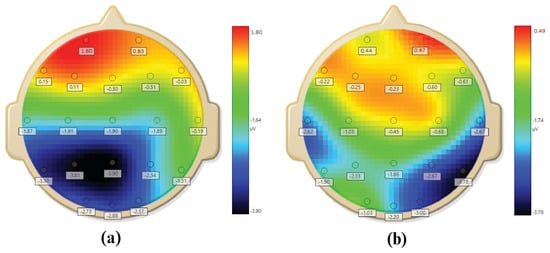 Average topomap images of brain for (a) stressed and (b) non-stressed subjects [].