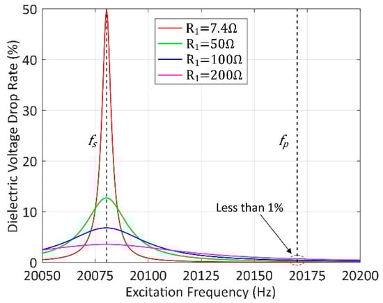 Moreover, we analyze the influence of from the perspective of the dielectric voltage drop rate calculated as , as shown in Figure 3. It shows that has the greatest impact at , especially under light load conditions. However, the dielectric voltage drop rate decreases to less than 1% near . Therefore, the influence of on the impedance characteristics can be ignored in our scheme.