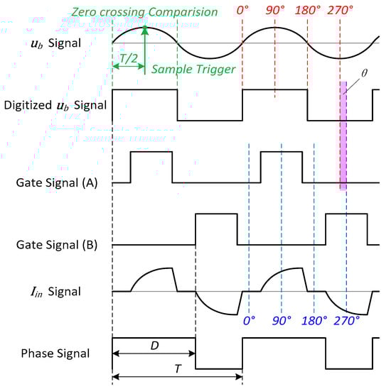 where and are the pulse width and the cycle of the phase signal, respectively. Affected by the variation in the current waveform under different conditions, the phase obtained by PBPD has a small deviation, which will be further analyzed in the experiment.