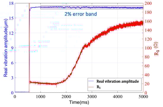 The variations in the actual vibration amplitude and are shown in Figure 17. It shows that gradually increases 10 times after startup, while the fluctuation in the actual vibration amplitude is within 2%. This result verifies the feasibility in a wide range of loads. On the other hand, it also demonstrates the dynamic adaptability of our scheme. Although the capability of frequency tracking and vibration control is verified, the HPPSs under transient state have more complex characteristics, which should be further considered in the dynamic process.