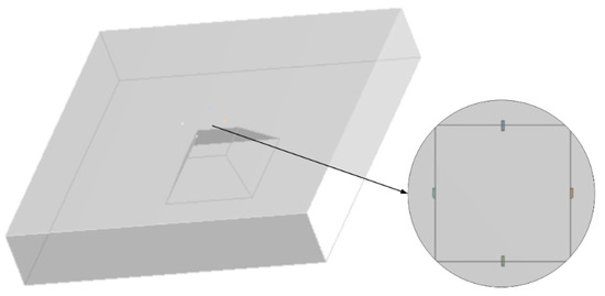 Firstly, the stress at different positions on the pressure-sensitive diaphragm is simulated. Then, according to the simulation result of the stress distribution, RL and RT are placed at positions with the same stress for simulating. Next, we change the location of RL and study the change of the nonlinearity when RL and RT are at different stress positions. Assume that at the initial piezoresistors locations, T = KP, at the changed RL location, T = (K + ΔK) P. In order to determine the locations of resistors more accurately, the U-shaped resistors are replaced by strip-shaped resistors in this simulation, as shown in Figure 6.