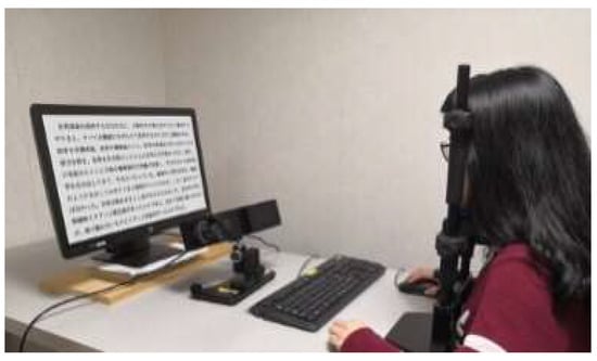 - Ask the participants to read four Japanese articles that are displayed randomly on a PC screen, one after another. The time given for reading is unlimited.
