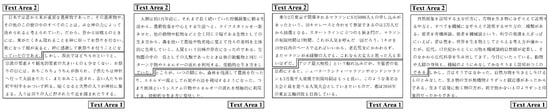Text Areas 1 and 2 in four Japanese reading articles.