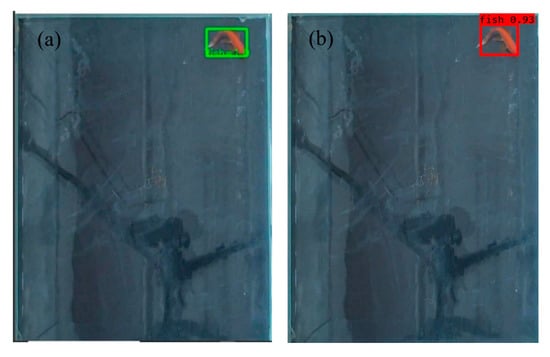 Recognition results of fish. (a) recognition by Faster R-CNN, (b) recognition by YOLO-V3.