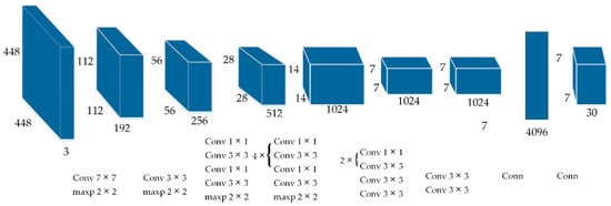 The original YOLOv1 detection network structure as shown in Figure 2. It consists of 24 convolution layers and 2 fully connection layers, the convolution layer is used to extract image features and the fully connection layer is used to predict image position and category probability. Due to the use of multiple down sampling layers, the object features learned by the network are not fine, which will affect the detection effect.