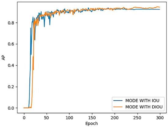 Figure 17 shows the effect of DIoU loss on the accuracy of the model. After using DIoU loss, the AP value of the model increased from 92.7% to 93.4%, increased by 1.5%.