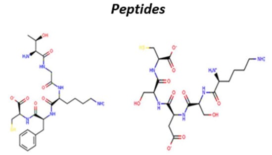 Peptides are ideal to mimic the molecular recognition mechanism occurring in biomolecules such as enzymes, antibodies, receptors (including olfactory) and transmembrane proteins. The design of peptide-based artificial receptors able of highly specific recognition is widely used to obtain inhibitors, drugs, reagents for affinity purification systems, and, also, active elements for gas sensing [55]. In particular, short peptides represent an excellent opportunity for the design of artificial receptors, because of the impressive number of different combinations that can be obtained using the 20 natural amino acids. Figure 2 reports examples of oligopeptides structures.