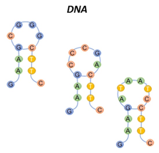 - Mascini, M.; Gaggiotti, S.; Della Pelle, F.; Wang, J.; Pingarrón, J.M.; Compagnone, D. Hairpin DNA-AuNPs as molecular binding elements for the detection of volatile organic compounds. Biosens. Bioelectron. 2019, 123, 124–130. [Google Scholar] [CrossRef]