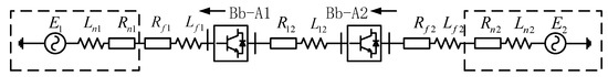 In our simulation (Table 1), we recorded 9 channels of data for normal and 6 different locations of IGBT break-circuit fault manually for each bridge (namely A-phase lower SMs, A-phase upper SMs, B-phase lower SMs, B-phase upper SMs, C-phase lower SMs, and C-phase upper SMs). There are seven MMC health conditions (Table 2) and 100 cases of IGBT break-circuit faults occurring at different IGBTs of the six bridges at different times. The power system is depicted in Figure 2. The type of SMs is half-bridge and the direction of the flow is shown as the arrow above. Ba-A1 and Ba-A2 are two AC bus bars. Bb-A1 and Bb-A2 are two DC bus bars. E1 is an equivalent voltage source for an AC network. E2 is a wind farm.