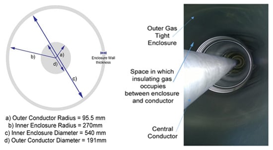 Gas insulated line conductor and enclosure dimensions.