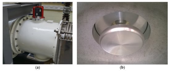 (a) UHF plate coupling sensor on gas insulated line enclosure section; (b) One of two GIL internal UHF plate coupling sensors.