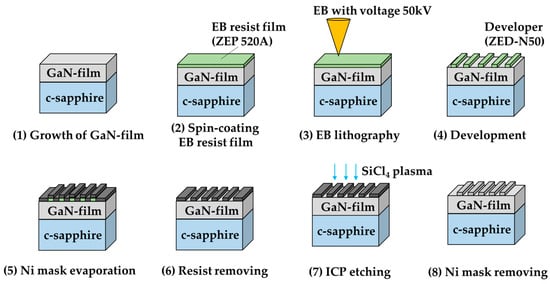 In this section, we describe the fabrication protocol of the GaN-HCG. The protocol is shown in Figure 2.