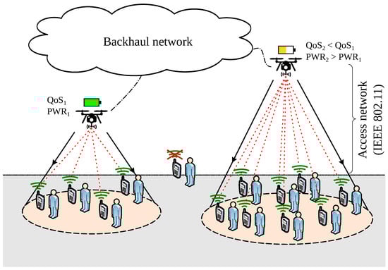 Long-duration activities may require hot replacement of drones due to battery exhaustion. In this work, we would like to deploy aerial APs to provide VoWiFi service to ground users in an outdoor long-duration activity (e.g., concert or similar longer 20–25 min) that will likely require hot replacement of drones due to battery exhaustion. In this context, the following considerations should be taken into account: