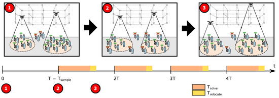 where stands for the energy associated with vertical climbing, is the energy spent in lateral transitions, and accounts for the energy spent while hovering (i.e., static). As proved in [48], the hovering factor is dominant and overshadows the other two, and thus, the expression in Equation (2) can be simplified to its last term.