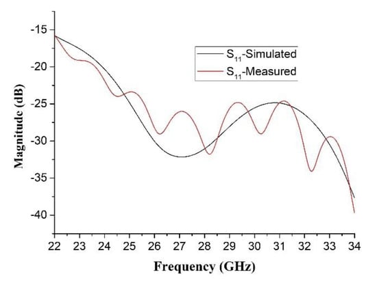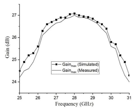 Followed by the increasing demands of high-speed data switching rate, the fourth-generation wireless transmission protocol is not enough for the demanding data usage in many areas as more and more devices are connected in the narrow channels exactly like the traffic jam. To handle this problem, the next-generation system, 5G, is developing with a better performance in capacity, information transmitted, and energy efficiency, and showing great prospects for applications [,,,]. Allocated by the Third Generation Partnership Project (3GPP), the spectrum available for 5G network is subdivided into lower frequency part and higher frequency part which is made 6 GHz as the separation [,]. Although compared with the narrow channels and the higher loss in sub-6 GHz bands, the higher frequency band such as 66 and 28 GHz, with the general properties of lower path loss caused by the atmospheric absorption and less occupied channels, will be a competitive candidate for the development of 5G communication [,], and the research on the array antenna are getting more and more attention in recent years to satisfy the stricter requirements of 5G.
