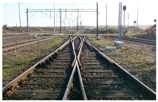 Turnouts are an expensive and critical point of feature of the railway system, as they are exposed to adverse operating loads as compared to a simple railway track and, therefore, require regular maintenance [11]. Sae Siew et al. [11] noted the torsional effects of railway turnout crossings on track-support structures. Turnouts, by virtue of their construction and purpose, are one of the subassemblies that form part of the railway infrastructure with the greatest number of accidents featuring railway vehicles [47]. The main points of derailments during train passage are the points of the switch and crossing (crossing). When the wheels of the rolling stock pass through a switch on a crossing, forces can be twice as high as when driving on the track. Kisilowski and Kowalik [47] presented the results of research on the application of a visual system for monitoring the diagnosis of individual elements of railway turnouts. This diagnostic system performs a real-time check of the surface condition of the switch point and crossing and determines the geometric values of both elements.