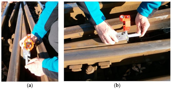 - Kampczyk, A. Pomiar strzałek w torze zwrotnym rozjazdu przykładnicą magnetyczno-pomiarową. Czas. Inżynierii Lądowej Środowiska Archit. 2017, 34, 91–105. [Google Scholar] [CrossRef]