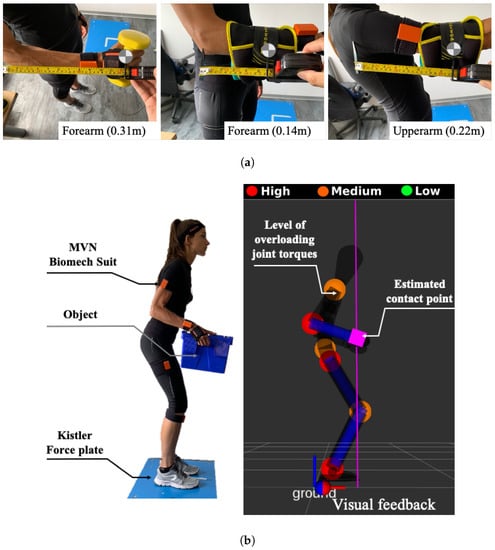 - Kim, W.; Lee, J.; Tsagarakis, N.; Ajoudani, A. A real-time and reduced-complexity approach to the detection and monitoring of static joint overloading in humans. In Proceedings of the 2017 International Conference on Rehabilitation Robotics (ICORR), London, UK, 17–20 July 2017; IEEE: Piscataway, NJ, USA, 2017; pp. 828–834. [Google Scholar]