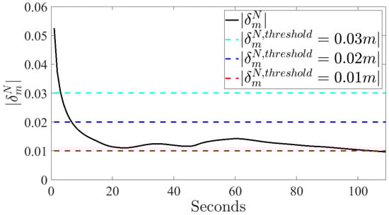 By setting a higher threshold, the contact point position could be found faster, nevertheless, with a larger confidence interval thus with less accuracy. Hence, has been set equal to 0.01 m as a good compromise between time and accuracy.